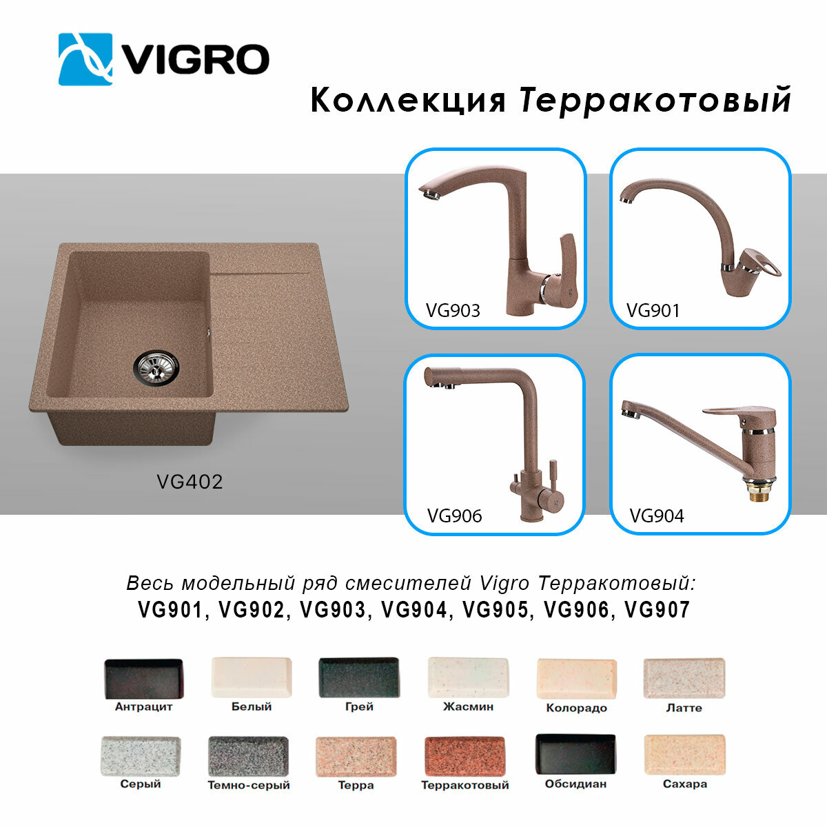 Кухонная мойка Мойка кухонная врезная Vigro VG402 терракотовый (640*490*190)