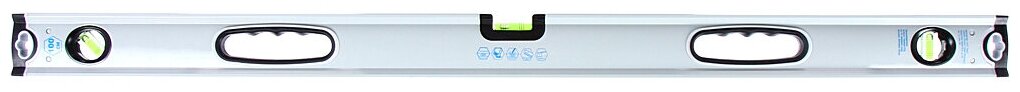 Лучшие цены. Уровень строительный 1000мм кобальт 243-295 предназначен для планирования строго горизонтальных, вертикальных поверхностей и поверхностей расположенных под углом 45о к горизонту. Изготовлен из жесткого алюминиевого прямоугольного профиля с толщиной стенки 1,2мм сечением 30x65 мм. Профиль имеет 2 фрезерованные грани для удобства позиционирования на округлых и скользких поверхностях. Уровень имеет 3 глазка-ватерпаса: горизонтальный, вертикальный и расположенный под углом 45о, точность 0,5 мм/м. Магазины в вашем городе.