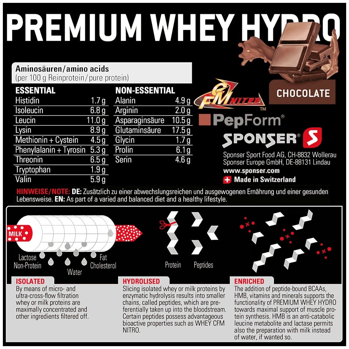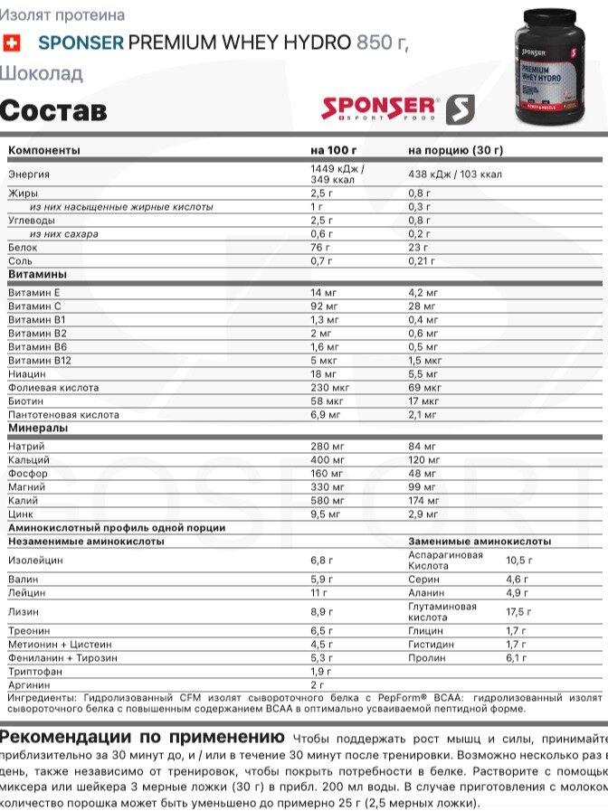 Протеин Изолят протеина SPONSER PREMIUM WHEY HYDRO 850 г, Шоколад
