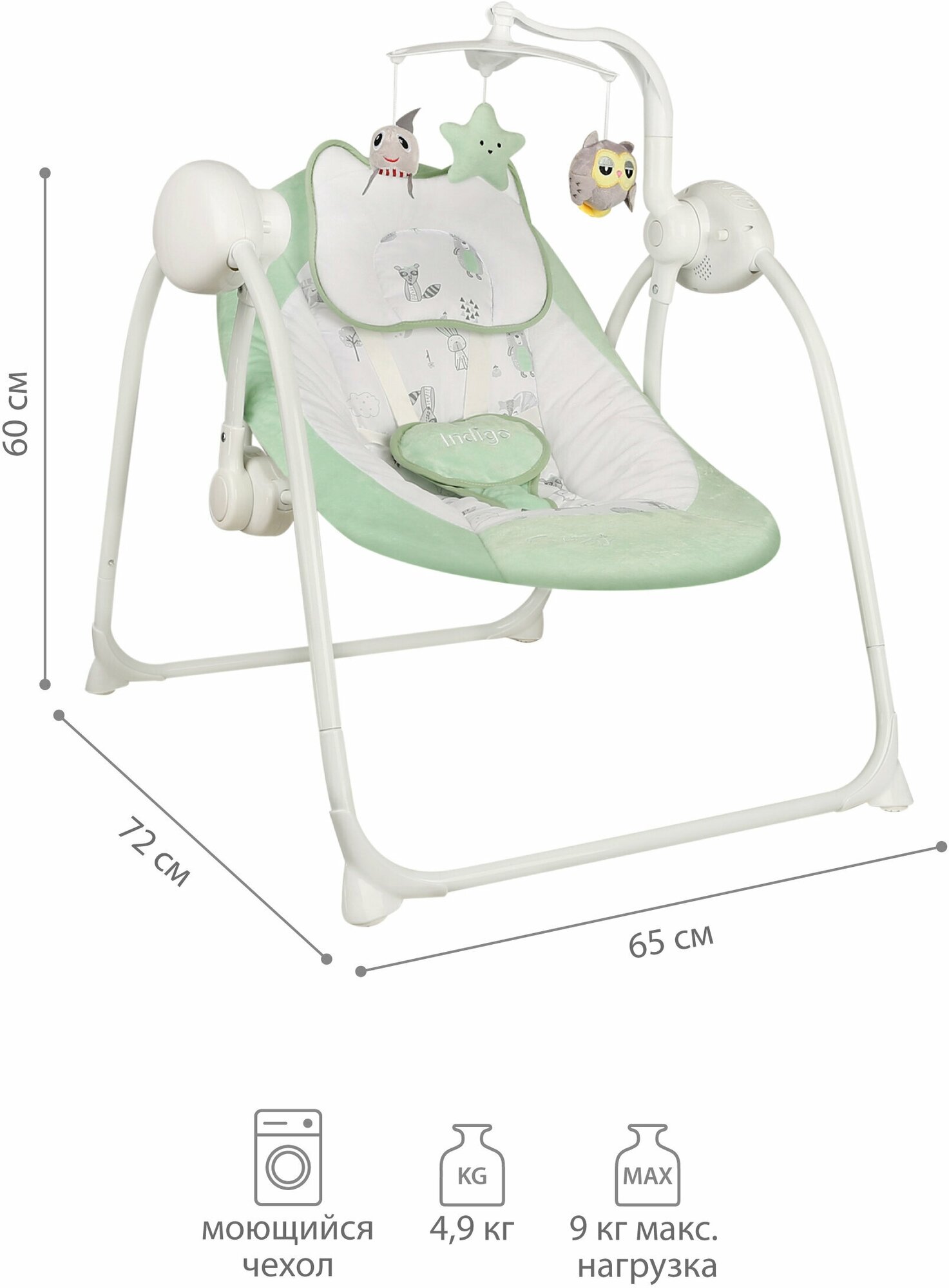 Качели и качалки Электронные качели Indigo STAR (0-9 кг), с адаптером, п/у, 12 мелодий, 5 скоростей, москитка, мятный