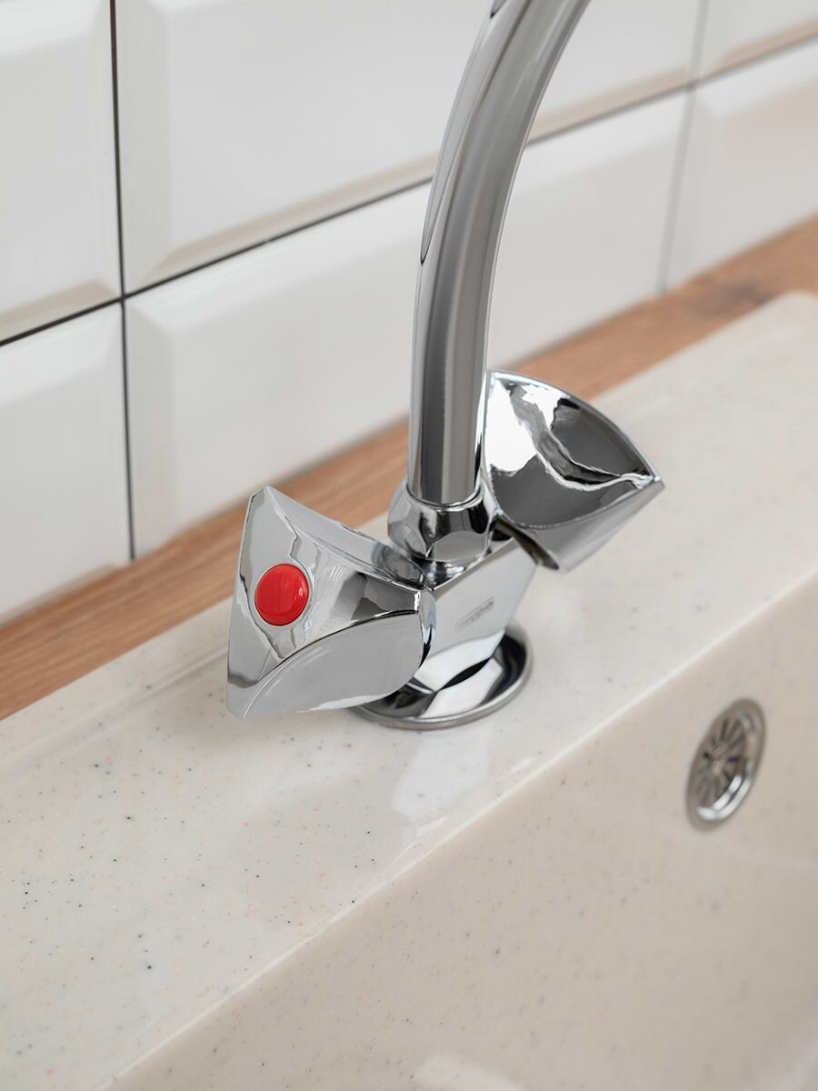 Смеситель для кухни СоюзКран поворотный излив 20 см, керамический кран-буксы 1/2, хром, цинк SK01-T207 567-065