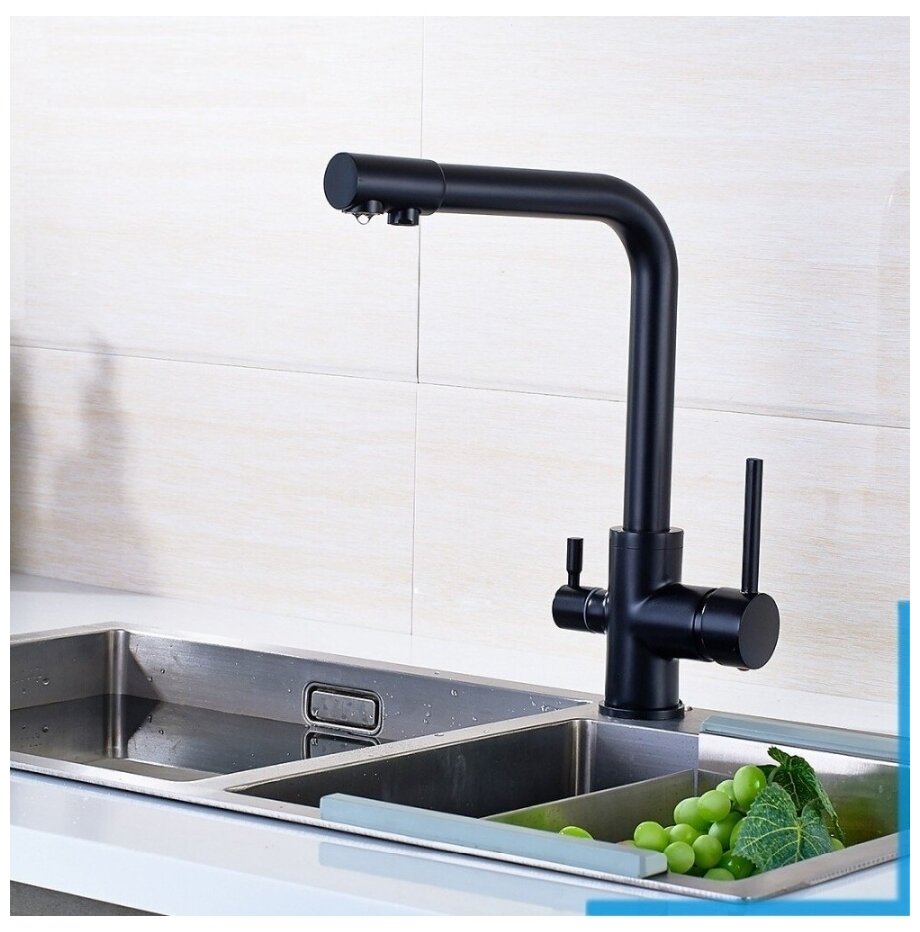 Cмеситель для кухонной мойки под фильтр с краном для питьевой воды (поворотный излив), черный 4 700 ₽ Подробнее