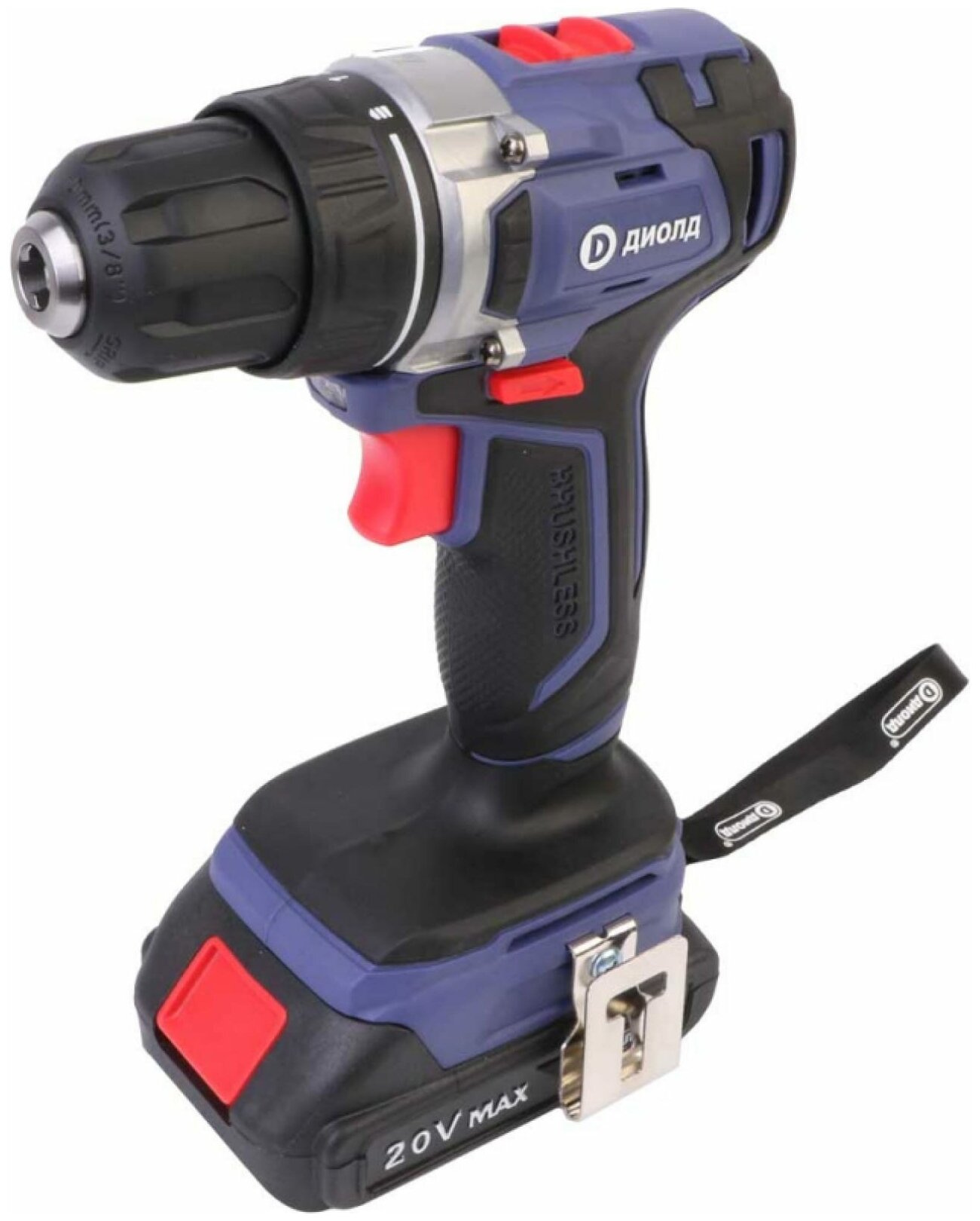 Дрель / шуруповерт Дрель-шуруповерт аккумуляторная диолд ДЭА-20Л-08, кейс, бесщеточный двигатель, 2 аккум., 2 скорости, плавное изменение оборотов, реверс, Li-ion, 20В, 0-1400 об/мин