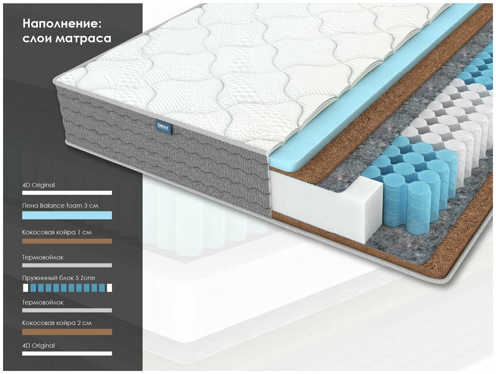 Матрас Dimax Мега Хард, 90x200 см, пружинный 11 408 ₽ Подробнее