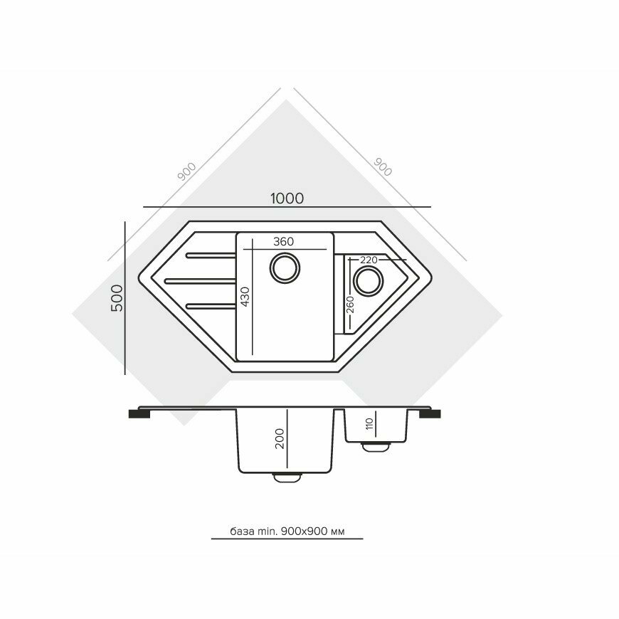 Мойка для кухни TOLERO Classic R-114 каменная врезная угловая с отверстием под смеситель. Кварц (№701 Серый)