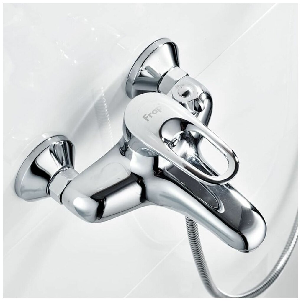 Лучшие цены. Однорычажный смеситель для ванны Frap F3201. Сочетает в себе удобную конструкцию, простоту в установке, универсальный современный дизайн и доступную цену за высокое качество. Превосходно дополнит интерьер любой ванной комнаты. Цвет: хром. Изготовлен из высококачественной латуни. Керамический картридж 40 мм обеспечивает точную настройку температуры и напора воды. Фиксированный излив. Аэратор с защитой от известковых отложений. Поворотный переключатель душ/излив. Ручной душ с настенным держателем. Магазины в вашем городе.