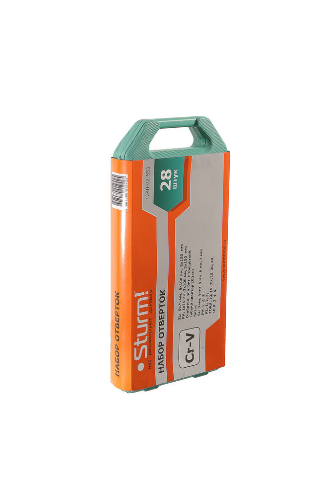 Лучшие цены. 1040-02-SS1 Набор отверток 28 предметов, кейс-дисплей Sturm! для монтажа и демонтажа крепежных изделий при выполнении ремонтных работ. Универсальный набор бит и рукоятки с трещоткой для домашнего использования. В прочном и удобном пластиковом кейсе-дисплее: отвертки SL5х75, SL6х100, SL8х150; PH1x75, PH2х100, PH3х150; Отвёртка для бит с трещеткой, гибкий адаптер 200 мм, биты: SL3, SL4, SL5, SL6, SL7 мм; PZ1, PZ2, PZ3, TORX: Т10, Т15, Т20, Т25, Т30, Т40; HEX3, HEX4, HEX5. Магазины в вашем городе.
