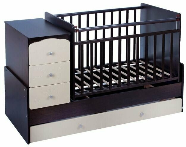 Лучшие цены. Кровать-трансформер понравится тем, кто ценит практичность. Модель предназначена для детей с рождения до 12 лет. Для младенцев комплект мебели используется как кроватка и пеленальный комод. Когда малыш подрастёт, превратите изделие в большое ложе без бортиков и снимите тумбу. Мебель имеет привлекательный дизайн с использованием классического сочетания цветов, лицевую часть украшает рельефное изображение забавного жирафа. Магазины в вашем городе.