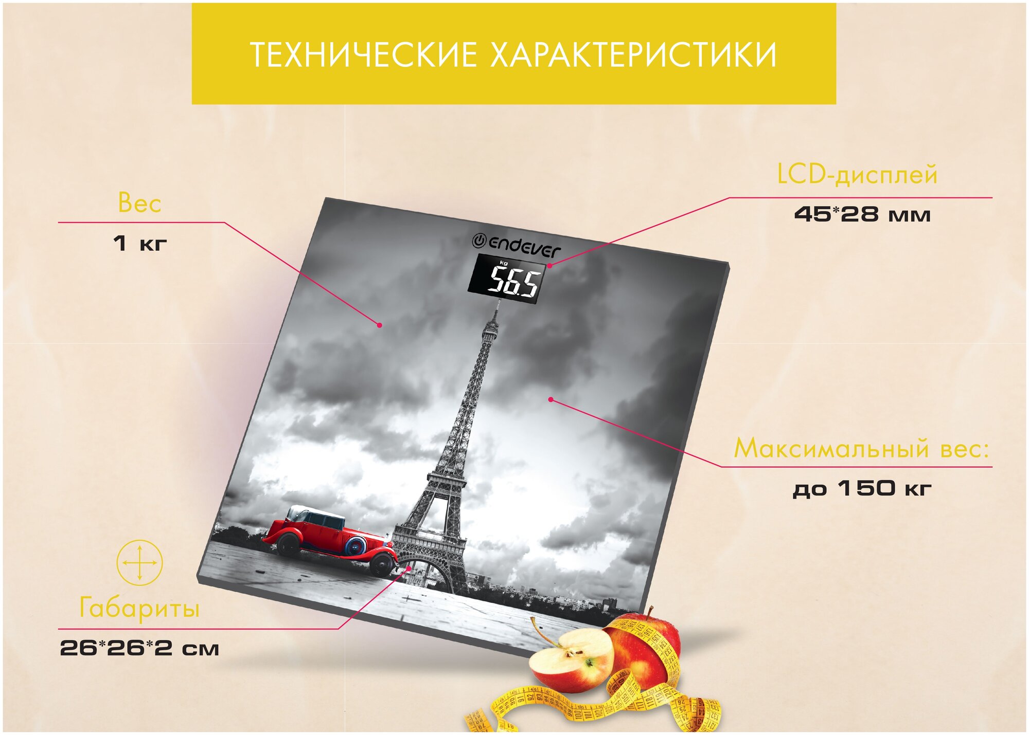 Весы напольные электронные Endever FS-542 / рисунок Париж / закаленное стекло / до 150 кг 721 ₽ Подробнее