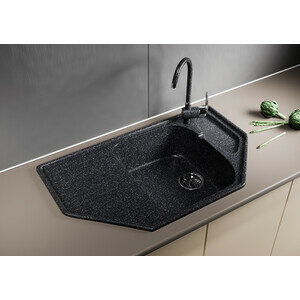 Мойка ML-GM24 угловая с крылом, черная (308), 490*780*170мм
