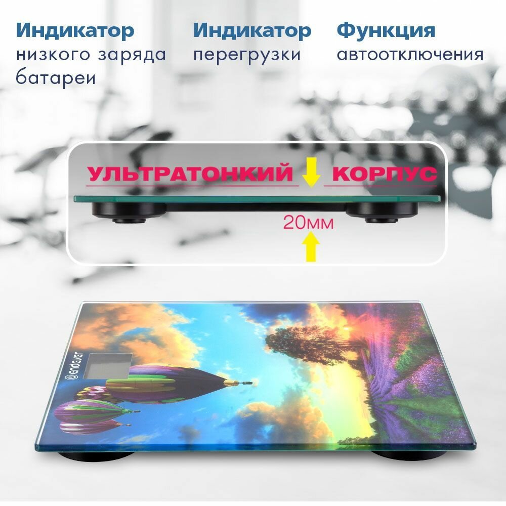 Весы Весы напольные электронные Endever Aurora-551 / рисунок Воздушный Шар / закаленное стекло / до 150 кг