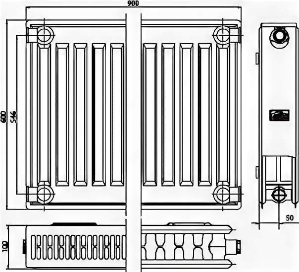 Радиатор панельный KERMI Profil-K_FK0 тип 22 высота 600 ширина 600 профильный, боковое подключение 1/2"