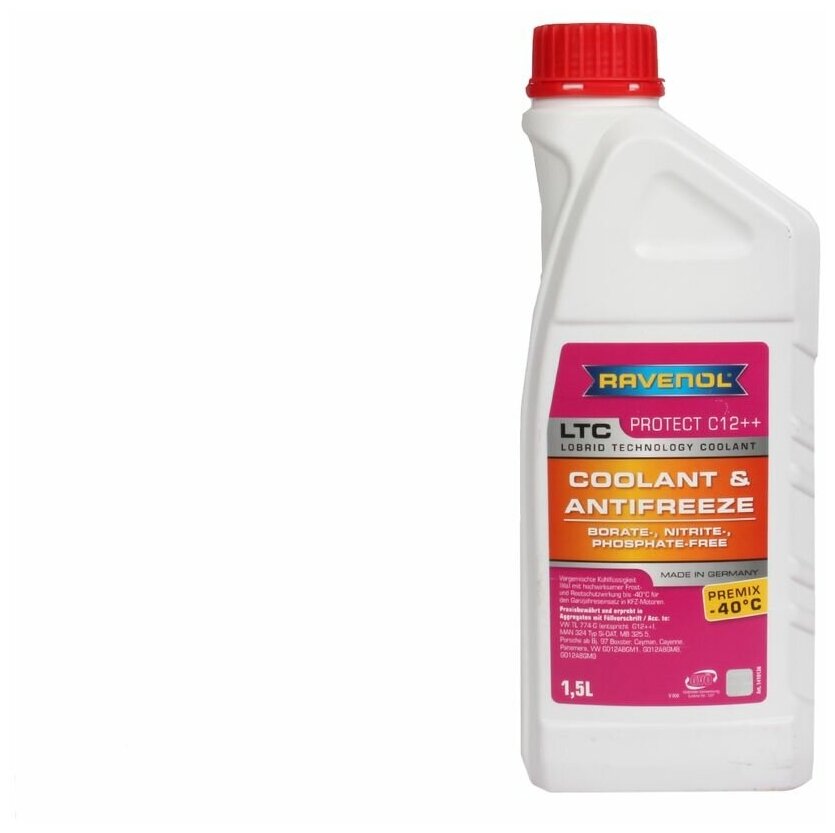 Лучшие цены. RAVENOL LTC Premix -40°C Protect C12++ - это экологически чистый антифриз для радиаторов охлаждающих контуров двигателей внутреннего сгорания на основе 1,2- этандиола (моноэтиленгликоля), который обеспечивает защиту от коррозии и замерзания, не требующую технического обслуживания. Продукт разработан на основе проверенной разработки ингибиторов путем сочетания силикатов с технологией органических добавок OAT в качестве долговременной защиты радиатора. Магазины в вашем городе.