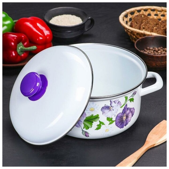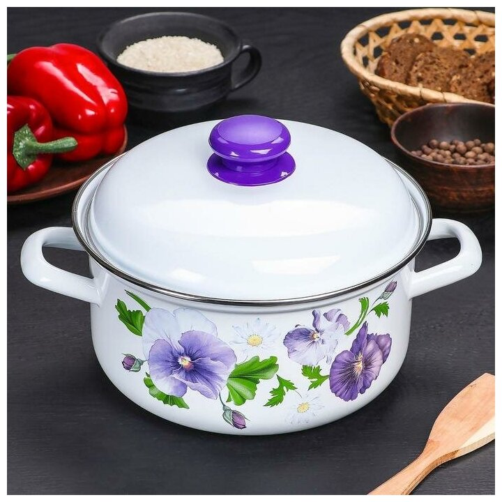 Кастрюля эмалированная «Анютины глазки», 3 л, индукция