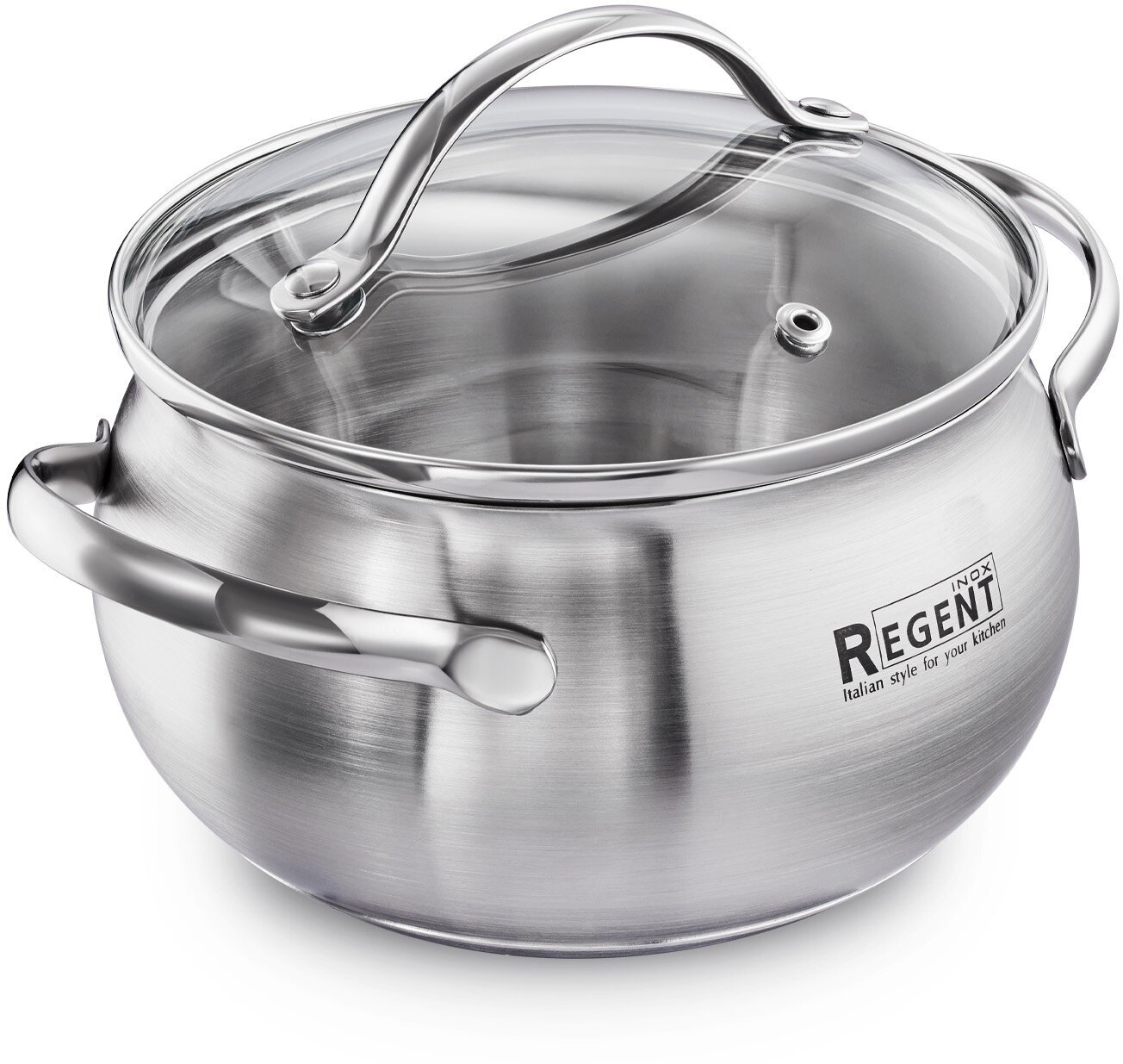 Лучшие цены. Размер кастрюли Apple D от Regent Inox 16х9,5 см и объем 2 л прекрасно подходят для готовки маленьких порций супа, гарниров и подлив. Стильная матовая полировка изделия 93-D-8 добавит шарма вашей кухне. Толщина стенок 0,8 мм и толщина дна 5,1 мм идеальны для быстрого равномерного нагрева. Крышка из жароустойчивого стекла вплотную прилегает к изделию, максимально удерживая температуру, и помогают осуществлять контроль за готовностью при приготовлении блюда. Магазины в вашем городе.