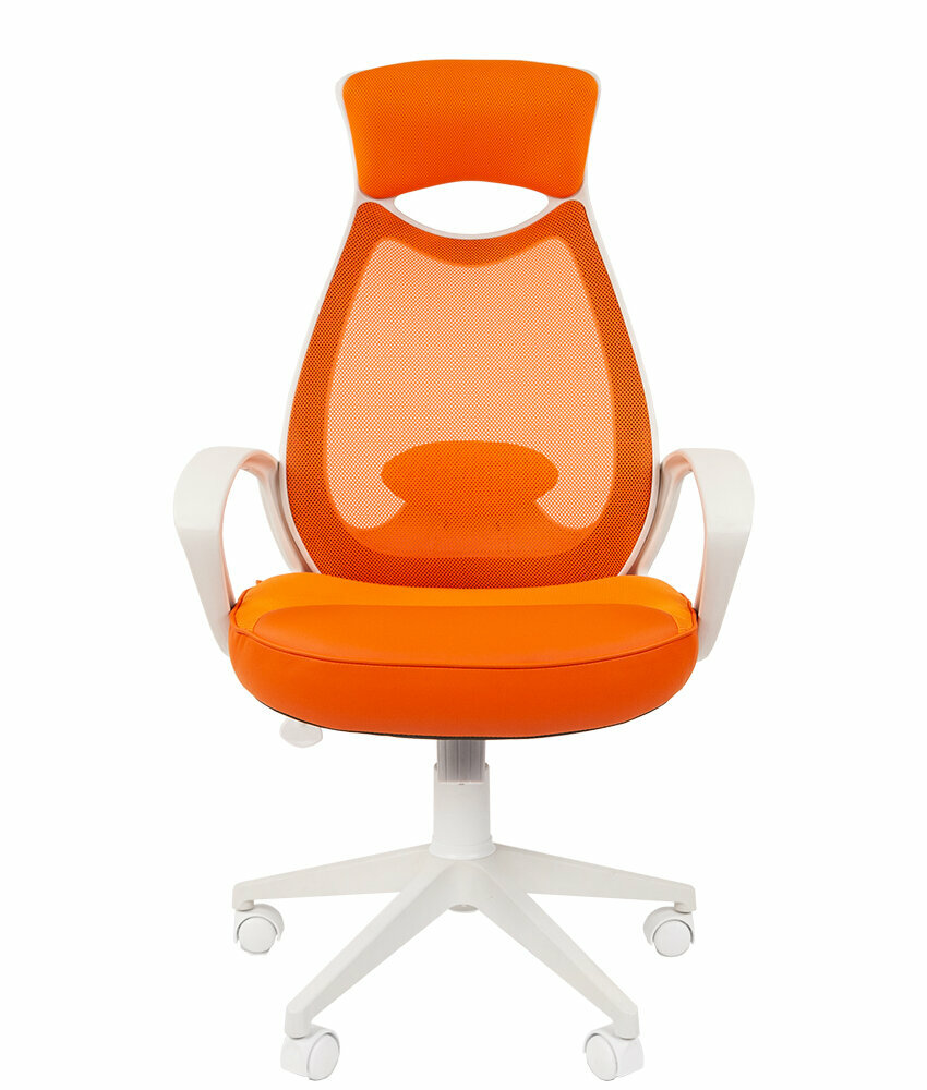 Офисное кресло, кресло руководителя CHAIRMAN 840 в белом пластике, ткань/сетка, оранжевый