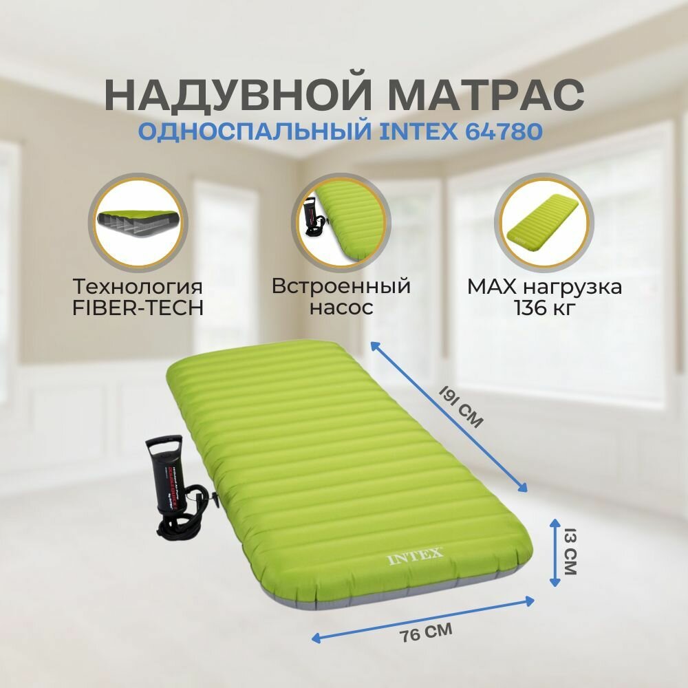 Надувной матрас 64780 Надувной матрас Односпальный Intex (76x191x13)