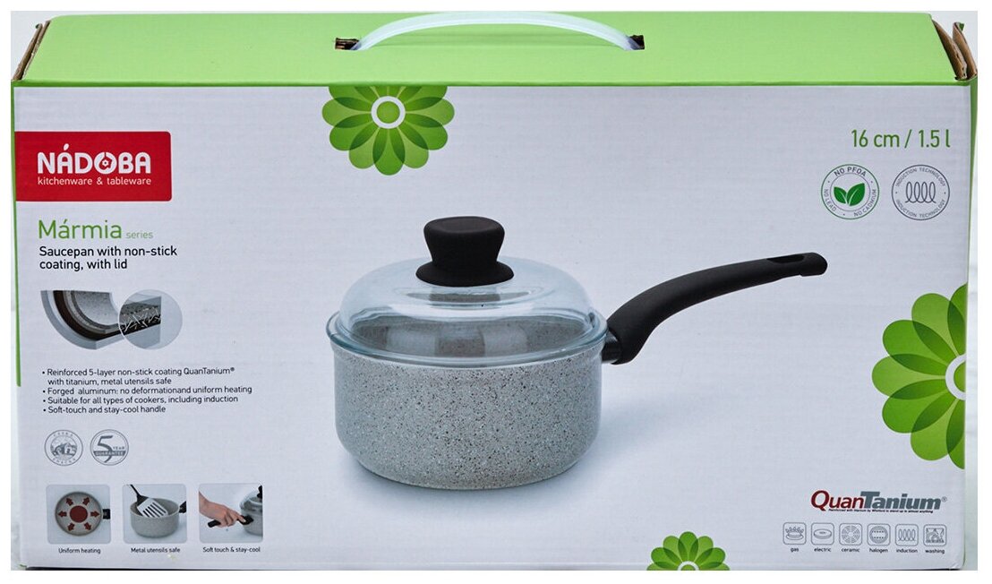 Ковш с крышкой Nadoba MARMIA, с антипригарным покрытием, 16 см, 1.5 л