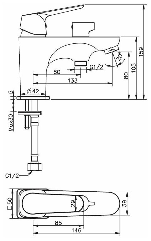 | Высота смесителя | 339 мм |