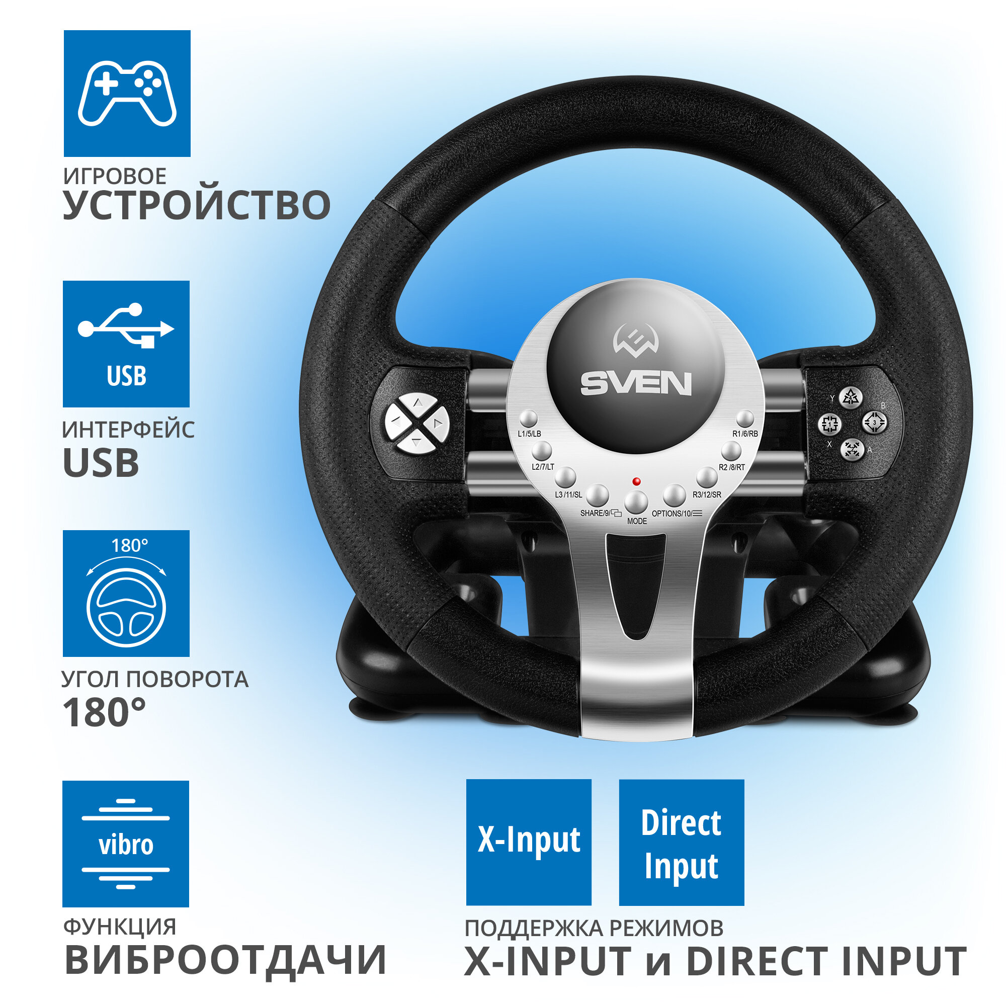 Руль Sven GC-W800 (PC/PS3/PS4/XBOXONE/Xinput) черный/серебристый (SV-015442) 6 790 ₽ Подробнее