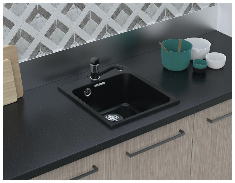 Кухонная кварцевая мойка GranFest QUARZ 17, квадратная, врезная, цвет черный/Раковина для кухни