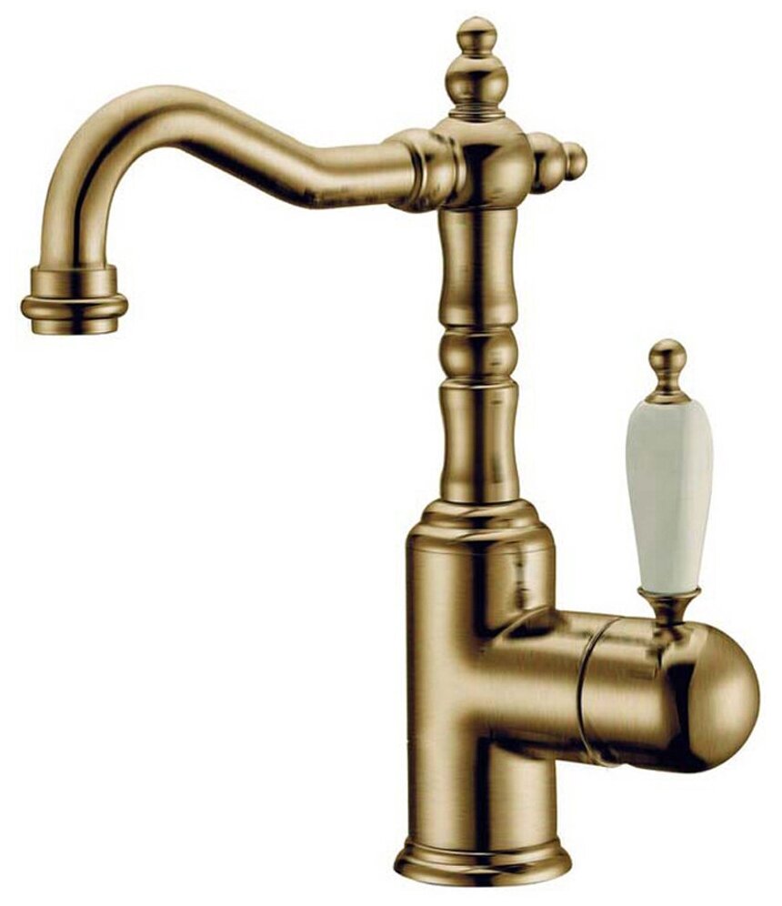 Лучшие цены. Смеситель Medici Ripresa от итальянской компании Boheme займет центральное место в интерьере ванной комнаты, оформленной в стиле ретро. Он изготовлен из экологичной латуни, устойчивой к коррозии и перепадам давления. Бронзовое покрытие не истирается, не тускнеет со временем. Рычаг управления температурой и напором декорирован керамической вставкой и расположен сбоку, что обеспечивает комфорт его вращения. Высокий поворотный излив удобен в сочетании с глубокой раковиной. Магазины в вашем городе.