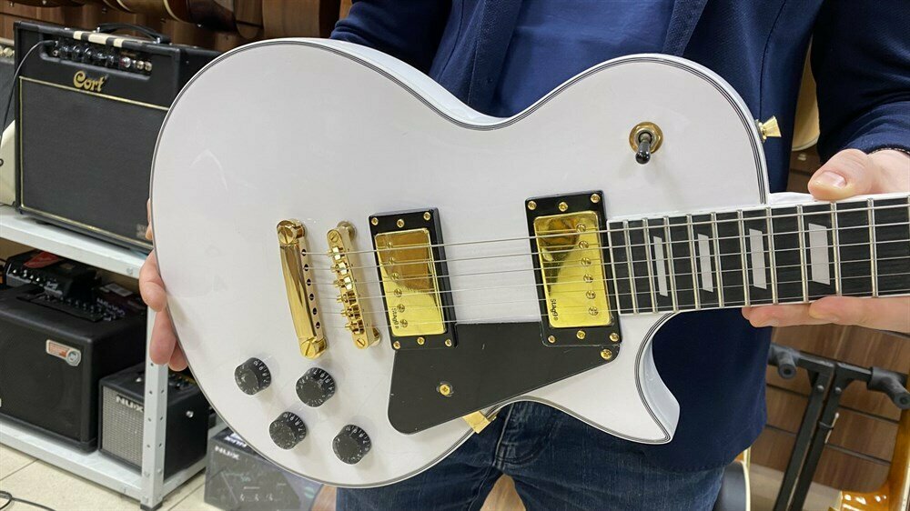 Лучшие цены. Тип: электрогитара, 22 лада Модель: LP (Classic Rock "L") Корпус: ольха Гриф: клен (вклеенный) Накладка грифа: палисандр Бридж: фиксированный, Tune-O-Matic style Звукосниматели: H/H (с позолоченными никелированными крышками) Переключатель звукоснимателей: 3-х позиционный Регуляторы: 2V/2T Колки: литые (позолота на никель). Магазины в вашем городе.
