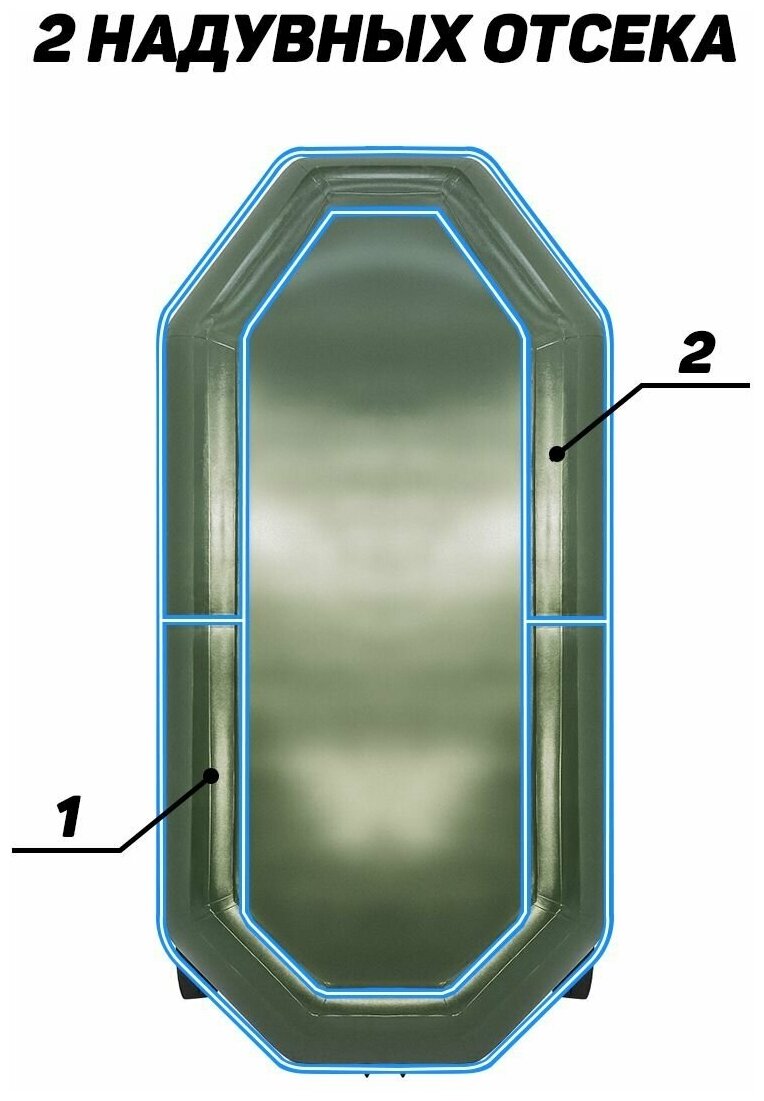 Лодка ПВХ Аква Мастер 260, зеленая, 2 места, 2 воздушных отсека