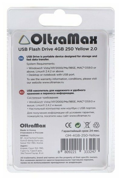 Лучшие цены. Флеш-накопитель USB 2.0 4GB OltraMax 250 желтый. USB флеш-накопитель OltraMax - простой и удобный аксессуар, предназначен для хранения и переноса данных, совместим с любым считывающим устройством, оснащённым USB-портом. Для корректной работы не требует установки специального программного обеспечения. Магазины в вашем городе.