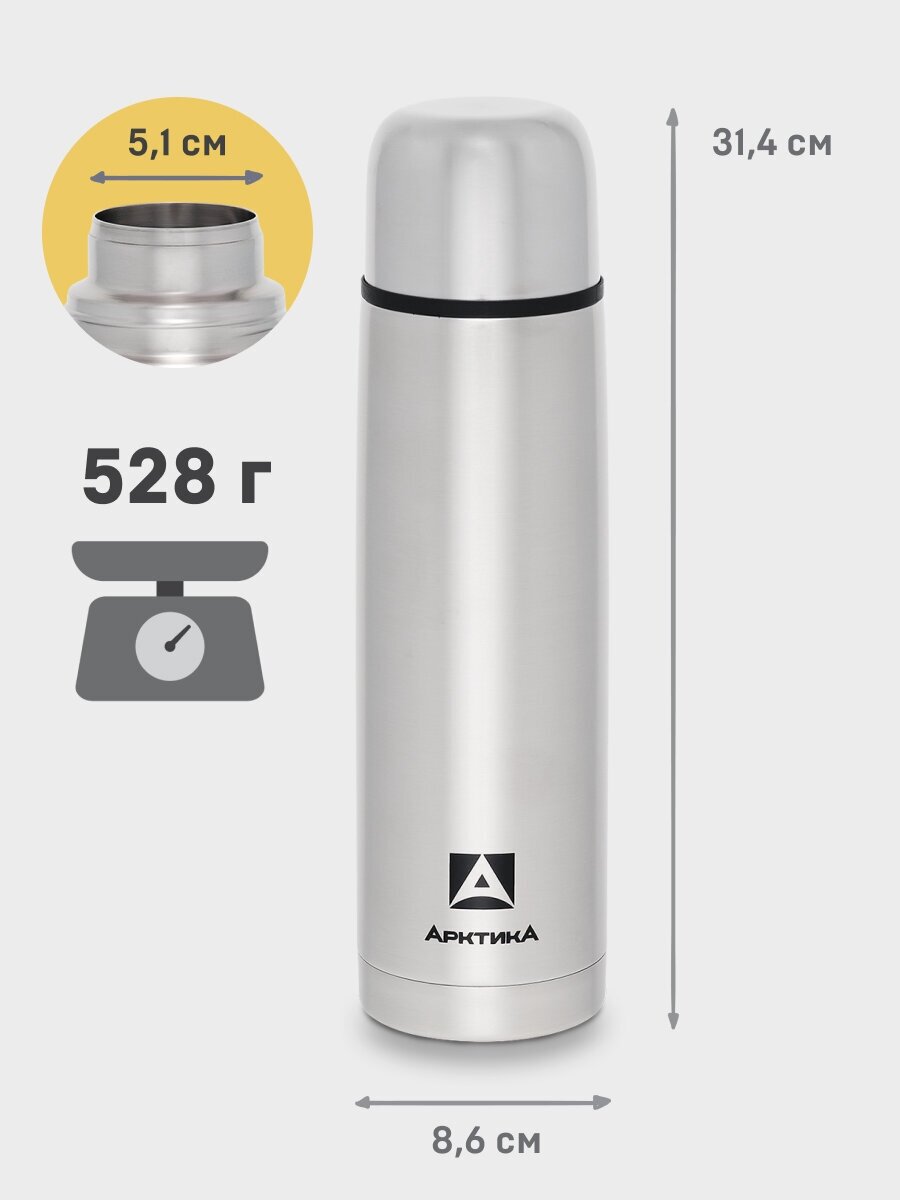 Классический термос Арктика 101, 1 л, серебристый