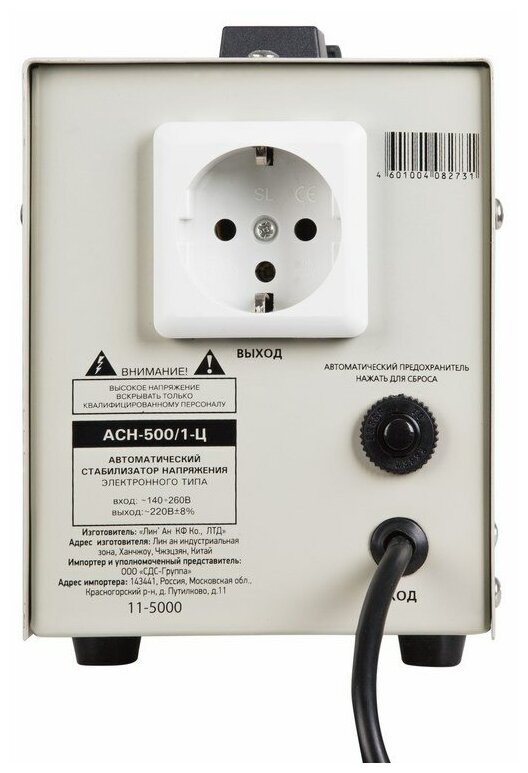 Однофазный стабилизатор (AСН-500/1-Ц) для защиты от перепадов в сети, В 140-260