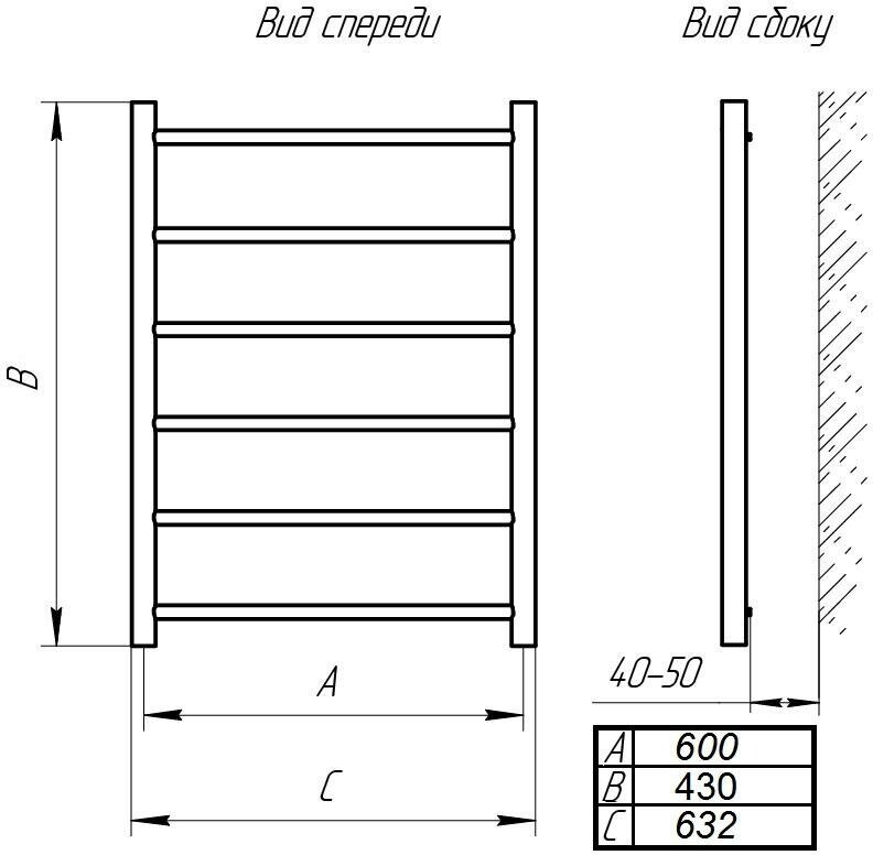 Полотенцесушитель ТЕРА Водяной полотенцесушитель Классика 600x500 ПСБ-08-11