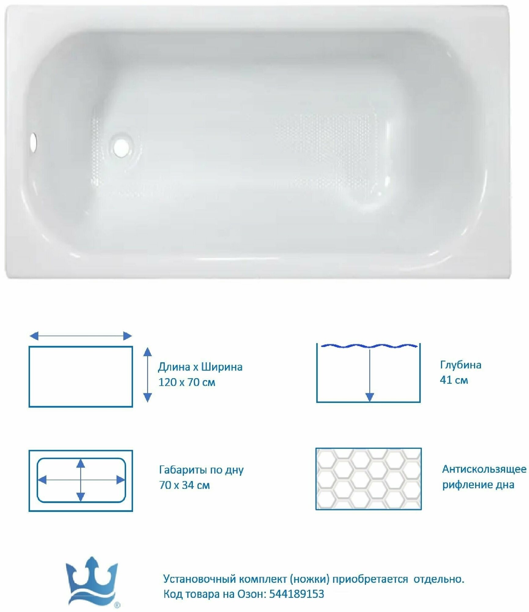 Ванна Triton Ультра 120 x 70 см без каркаса