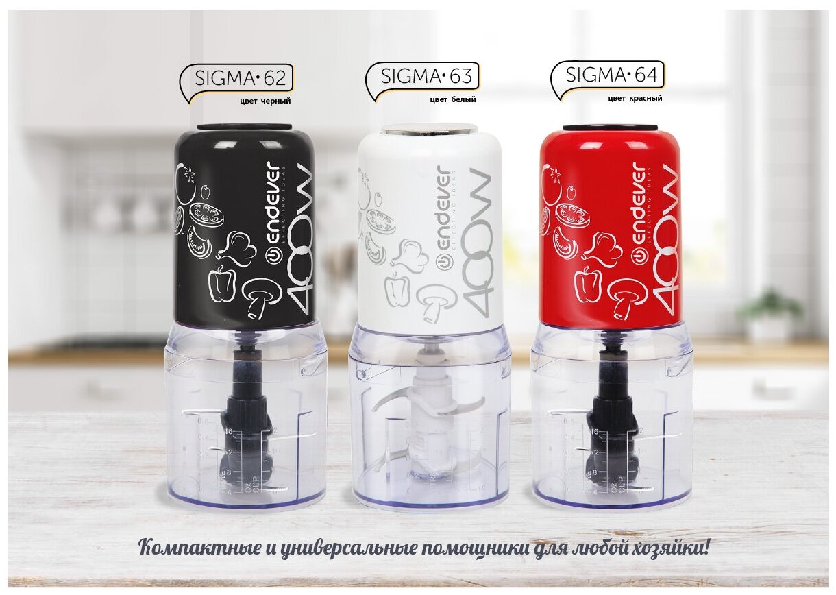 Измельчитель кухонный электрический Endever Sigma-62/63/64 / чоппер / 400 Вт / пластиковая чаша объемом 0,5 литр / 2 двойных лезвия