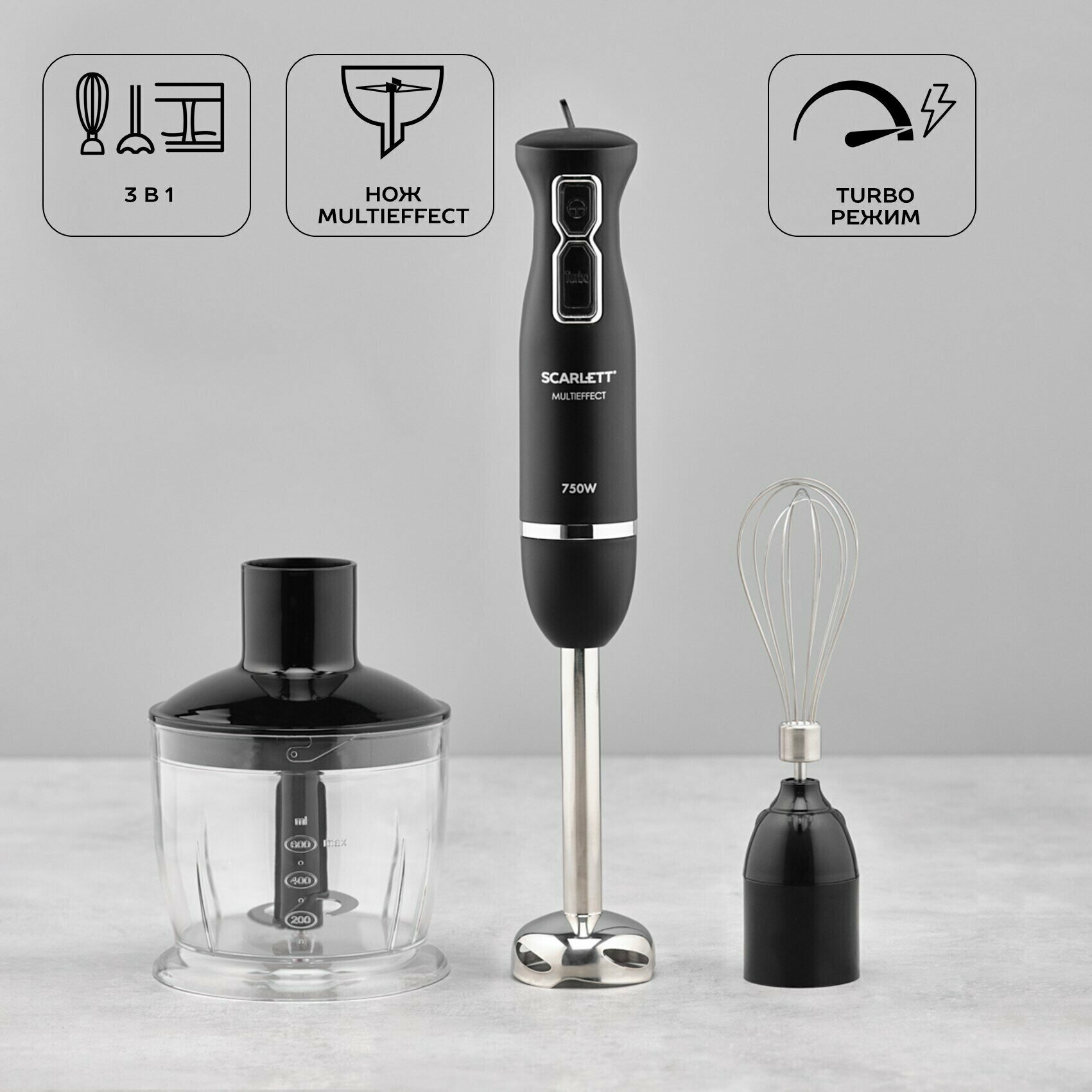 Блендер погружной Scarlett SC-HB42F39, мощность 750 Вт, нож Multieffect, черный