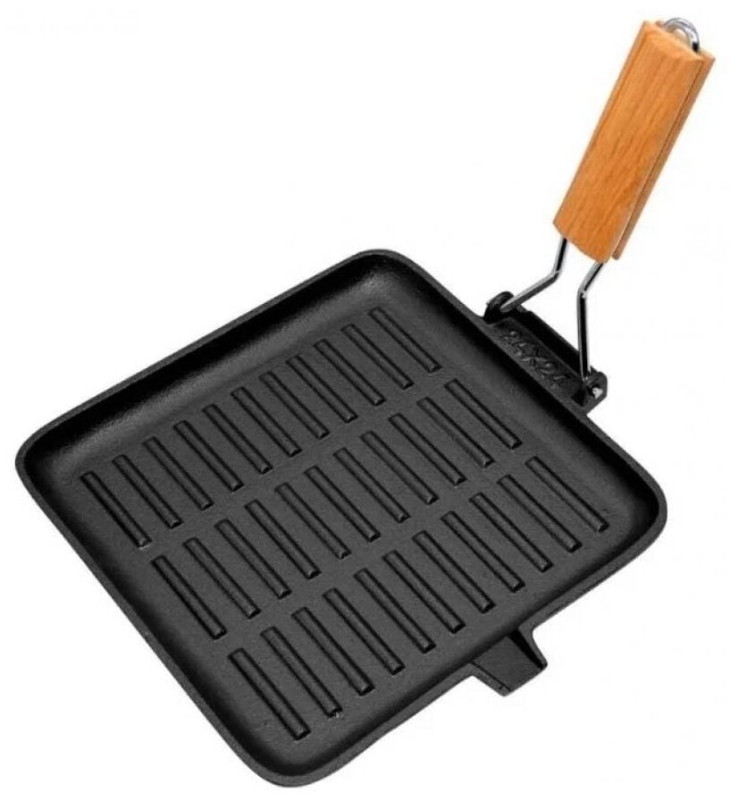 Сковорода-гриль чугунная с дерев складной ручкой, квадратной формы, PADELLA, 28*28 см