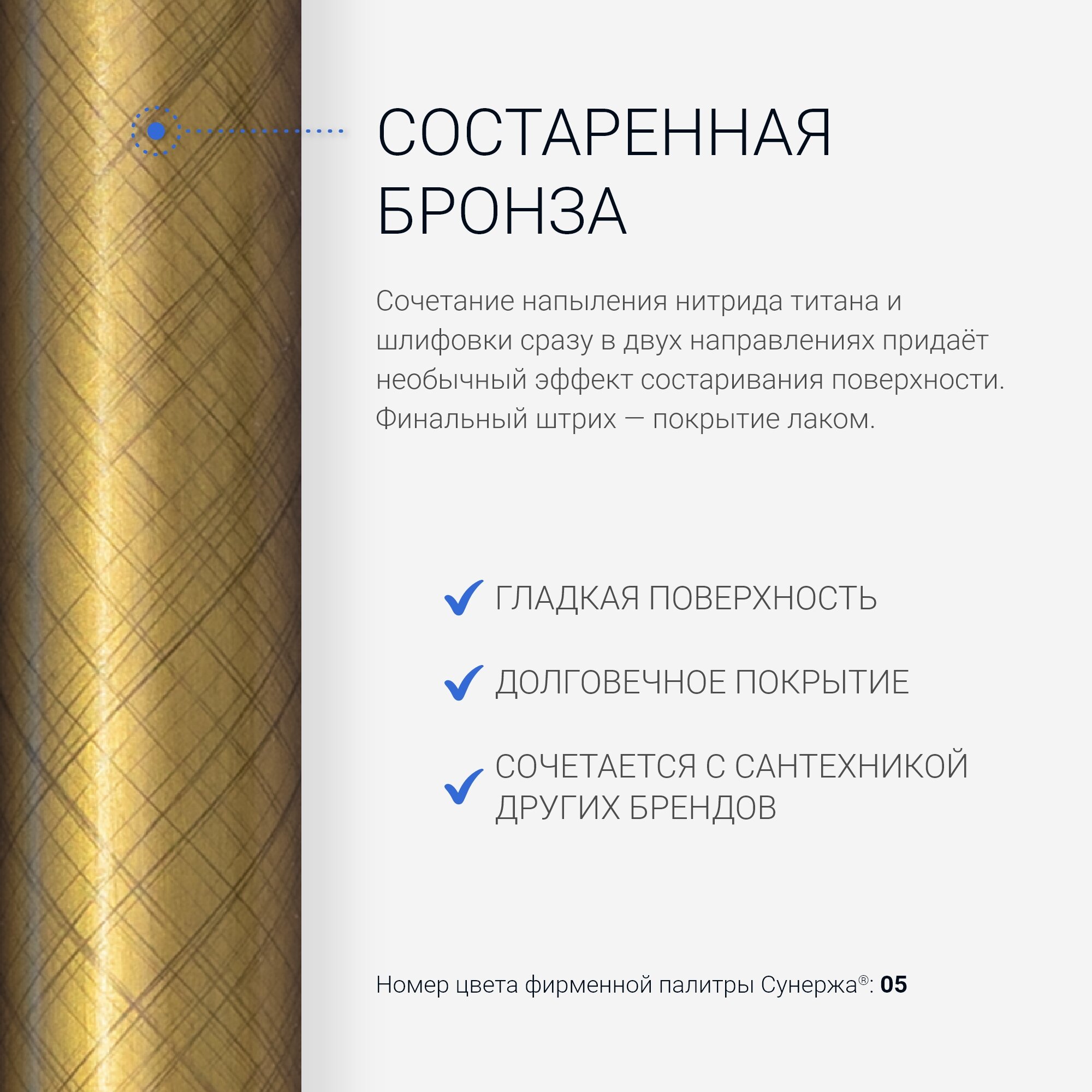 | Покрытие | бронза, под золото, нержавеющая сталь, черный, белый, серый, графит, латунь |
