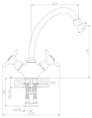 ROSSINKA Q02-71, Смеситель для кухонной мойки двуручный с поворотным изливом 260 мм, хром 3 840 ₽ Подробнее