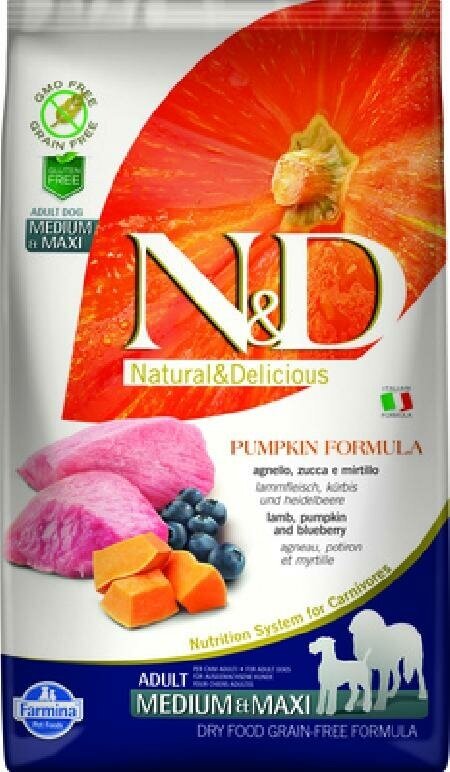 FARMINA DOG N&D GRAIN FREE PUMPKIN ADULT MEDIUM & MAXI LAMB & BLUEBERRY беззерновой для взрослых собак средних и крупных пород с ягненком, черникой и тыквой (12 кг)