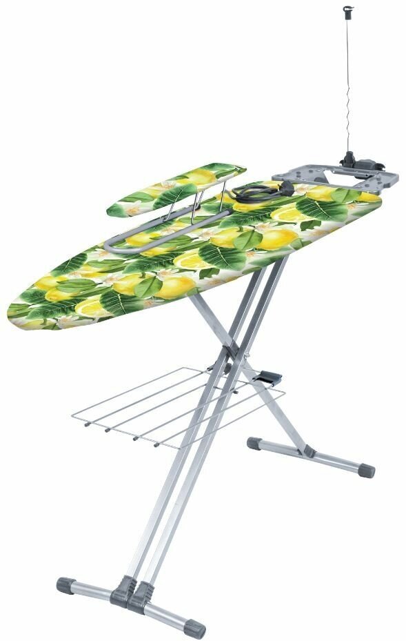 | Функции и возможности | подставка для утюга, регулировка высоты, подрукавник, полка для белья, держатель для вешалок, встроенная розетка, держатель провода |