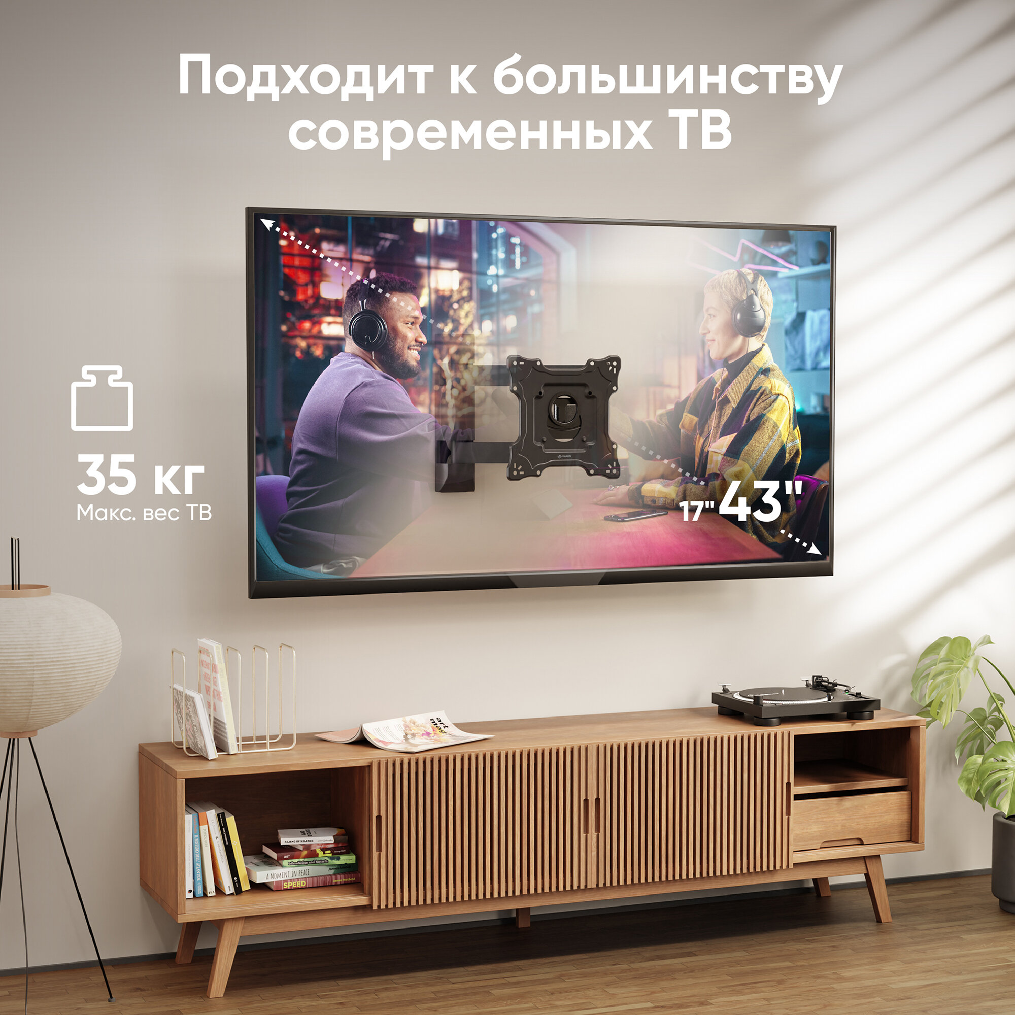 Кронштейн для телевизора 17"-43" ONKRON M4S наклонно-поворотный, черный
