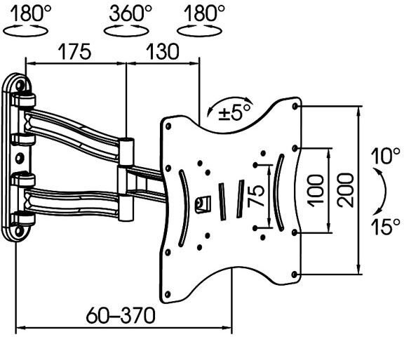 Кронштейн Kromax TECHNO-3 GREY для ЖК и LED ТВ 15"-40", настенный, 4 ст. свободы, VESA 75/100/200*100/200, max 20 кг 2 235 ₽ Подробнее