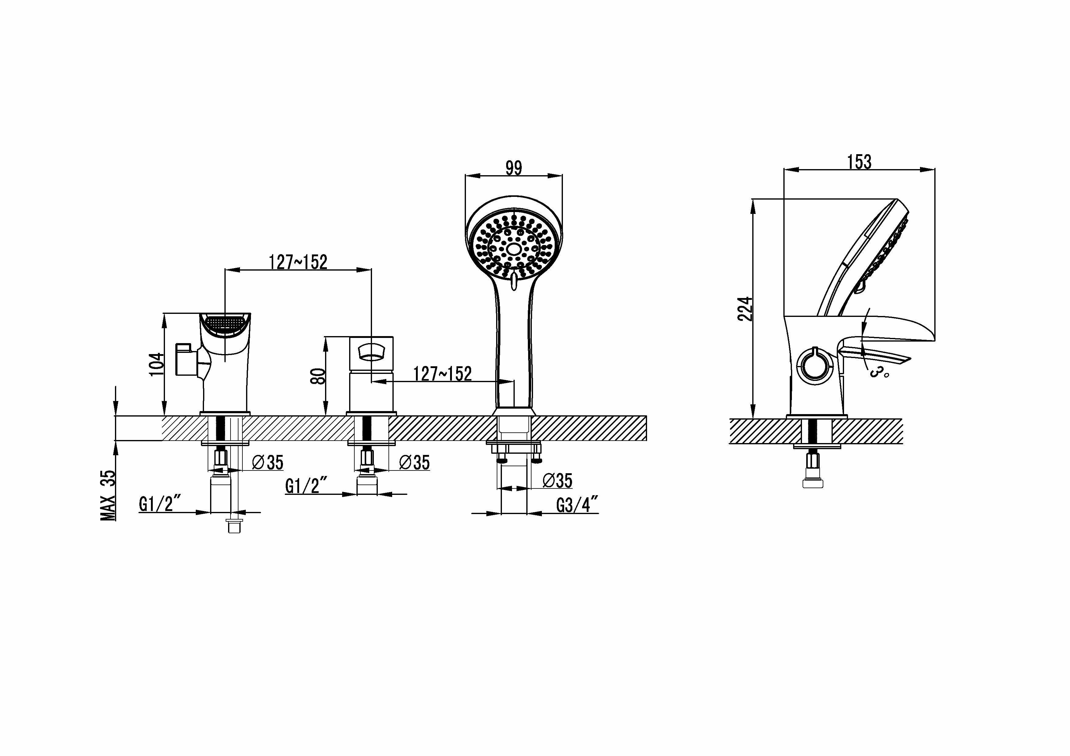 Смеситель Смеситель на борт ванны LEMARK Atlantiss LM3245C на 3 отверстия