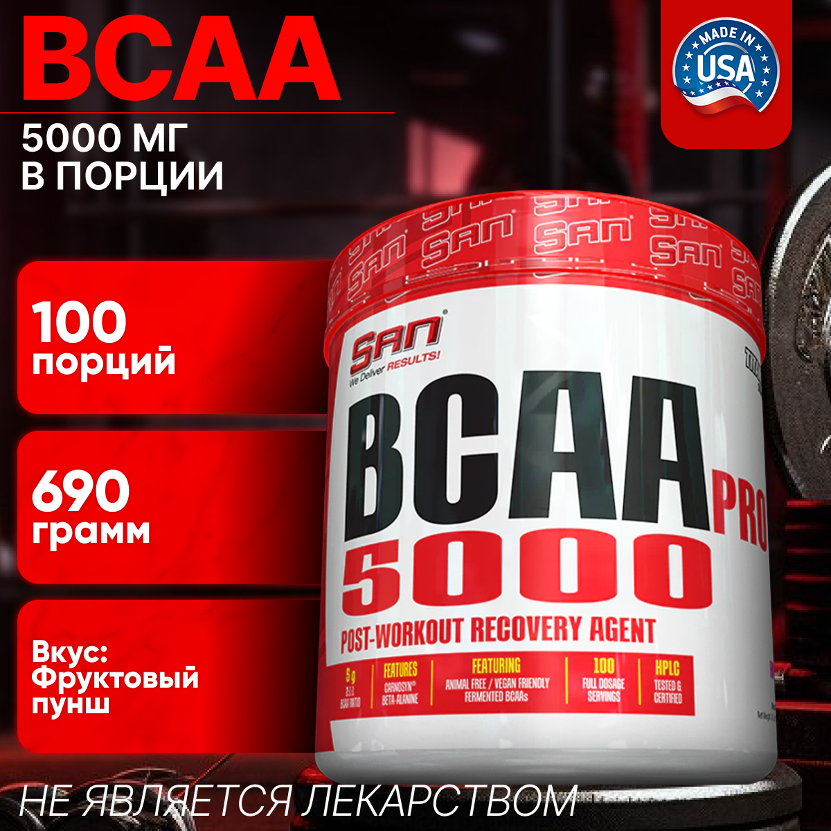 Аминокислоты Аминокислоты SAN BCAA Pro 5000 фруктовый пунш 690 гр. БЦАА порошок