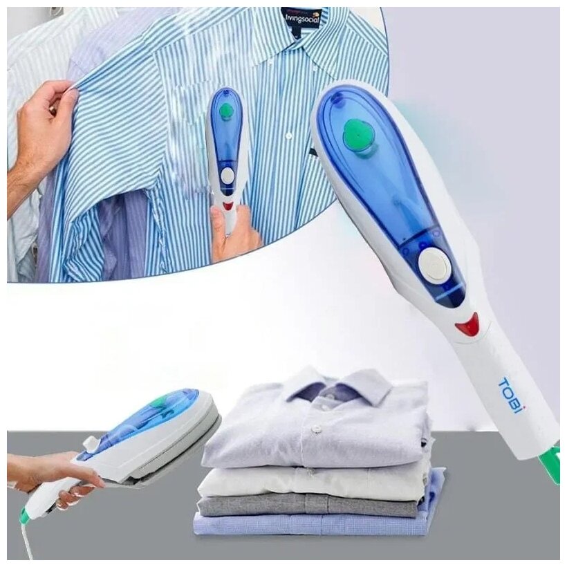 Лучшие цены. Ручной отпариватеь / Отпариватель для одежды ручной Tobi, 2 насадки, синий/белый Хорошая альтернативна утюгам. Ручной отпариватель обладает компактными размерами и легким весом, потому вы можете взять его с собой в любую поездку. Вам не придется судорожно переодеваться на деловую встречу в другом городе или искать другой комплект вещей. Вы сможете за несколько секунд привести в порядок любую вещь. Магазины в вашем городе.
