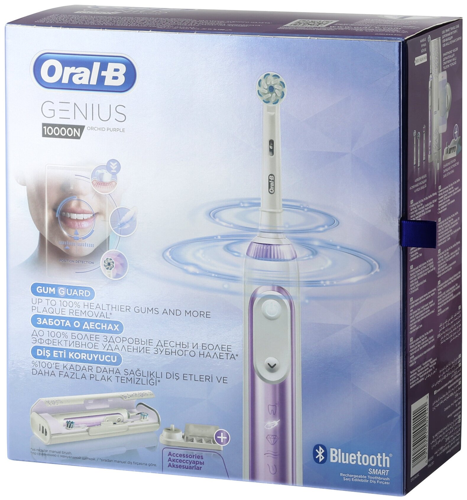 Лучшие цены. Электрическая зубная щетка Oral-B Genius 10000N Orchid Purple, оснащенная интеллектуальной системой чистки от Oral-B с технологией защиты десен, помогает ухаживать за полостью рта. Перейдите на новый уровень чистки за 2 минуты в соответствии с рекомендацией вашего стоматолога. Преимущества зубной щетки Oral-B Genius 10000N Orchid Purple: * 3D-технология чистки: до 10500 возвратно-вращательных движений + до 48000 пульсирующих движений в минуту. Магазины в вашем городе.
