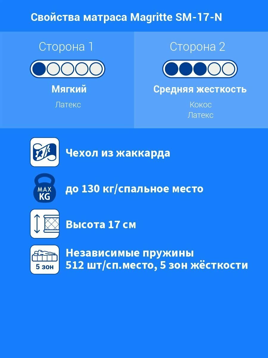 Матрас Alitte Magritte SM-17-N, Размер 130х220 см 36 180 ₽ Подробнее