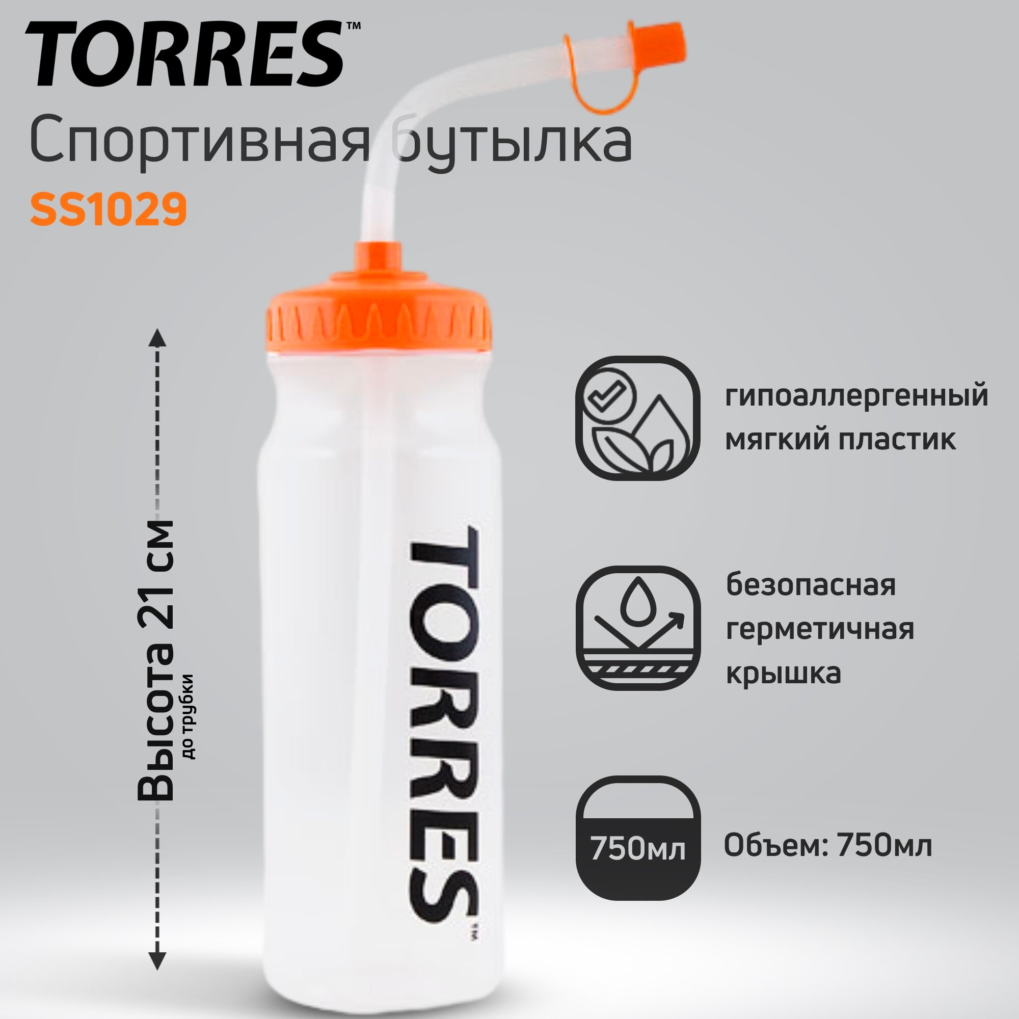 Лучшие цены. Бутылка для воды TORRES. Объем 750мл, гипоаллергенный мягкий пластик, безопасная герметичная крышка с трубкой для питья (подходит для спортсменов в шлемах-хоккей, единоборства и др.). Не предназначена для горячих жидкостей (выше 80°С). Магазины в вашем городе.