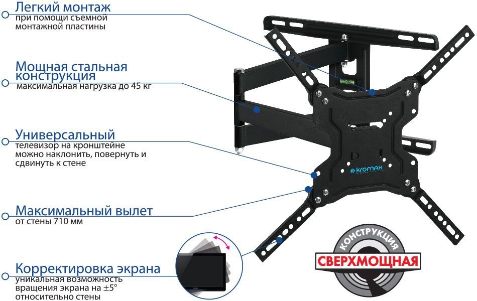 Лучшие цены. Кронштейн для ТВ Kromax DIX-19 22-65", черный. Магазины в вашем городе.