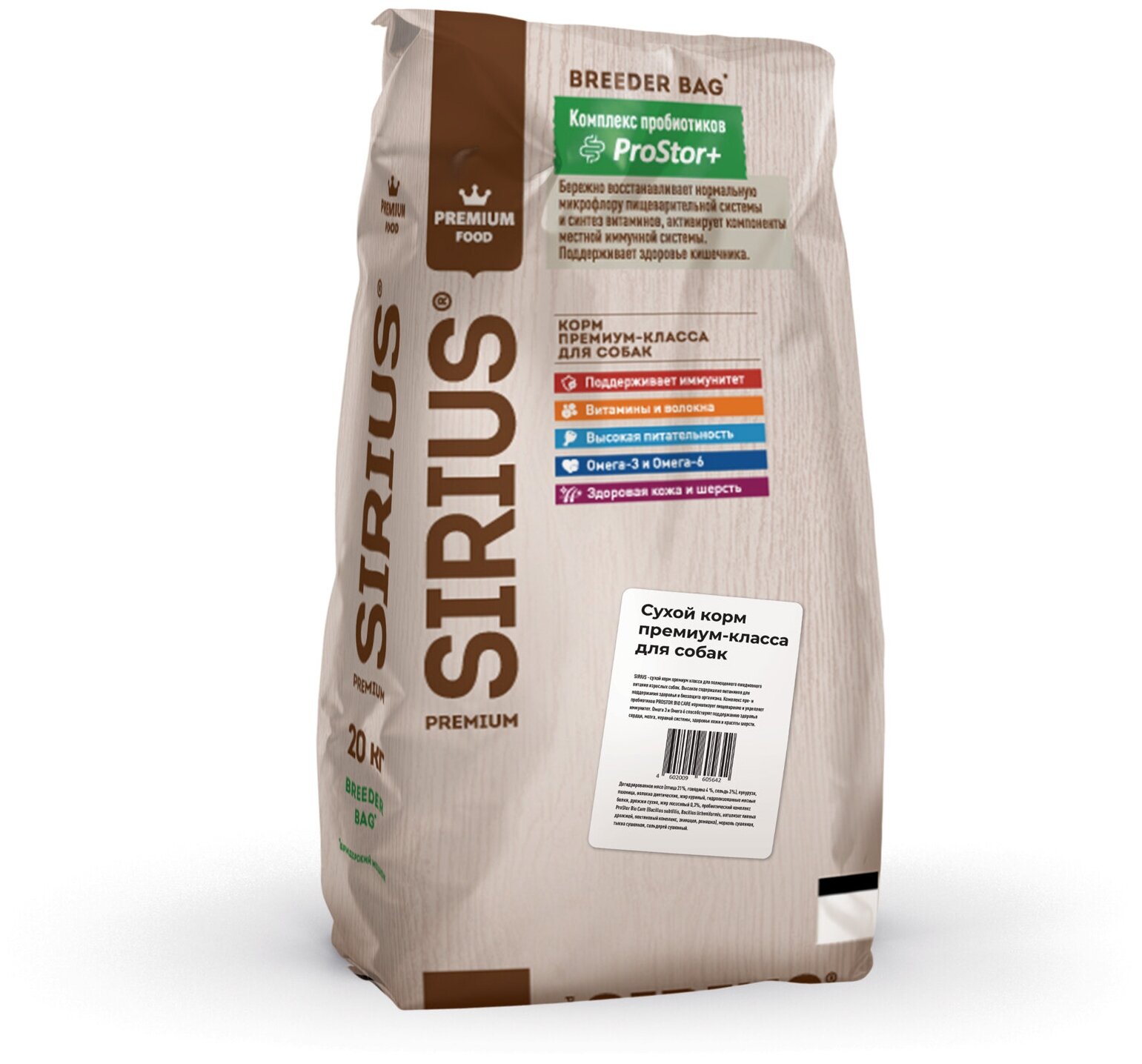 Лучшие цены. Корм Sirius «Говядина с овощами» премиум-класса — полноценный ежедневный рацион для взрослых собак с повышенным содержанием витаминов для поддержания здоровья питомца и биозащиты организма. Особенность корма — функция ProStor Bio Care. Это комплекс пробиотиков и пребиотиков четвёртого поколения, способствующий восстановлению микрофлоры кишечника. Комплекс создаёт бактериальную прослойку, защищая стенки кишечника от проникновения патогенный флоры. Магазины в вашем городе.